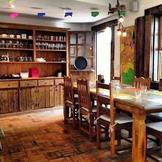 O ponto alto do meu final de semana foi o almoço com Mamãe e Irmã num "vegetariano" supimpa cuja Nutricionista é amiga da Irmã, e que se recusa a usar soja em qualquer prato (pra fugir do lugar-comum). Uma pegada meio indiana, que ficou regionalista (caipira) pelas festas juninas (vide fotos). Site do local: